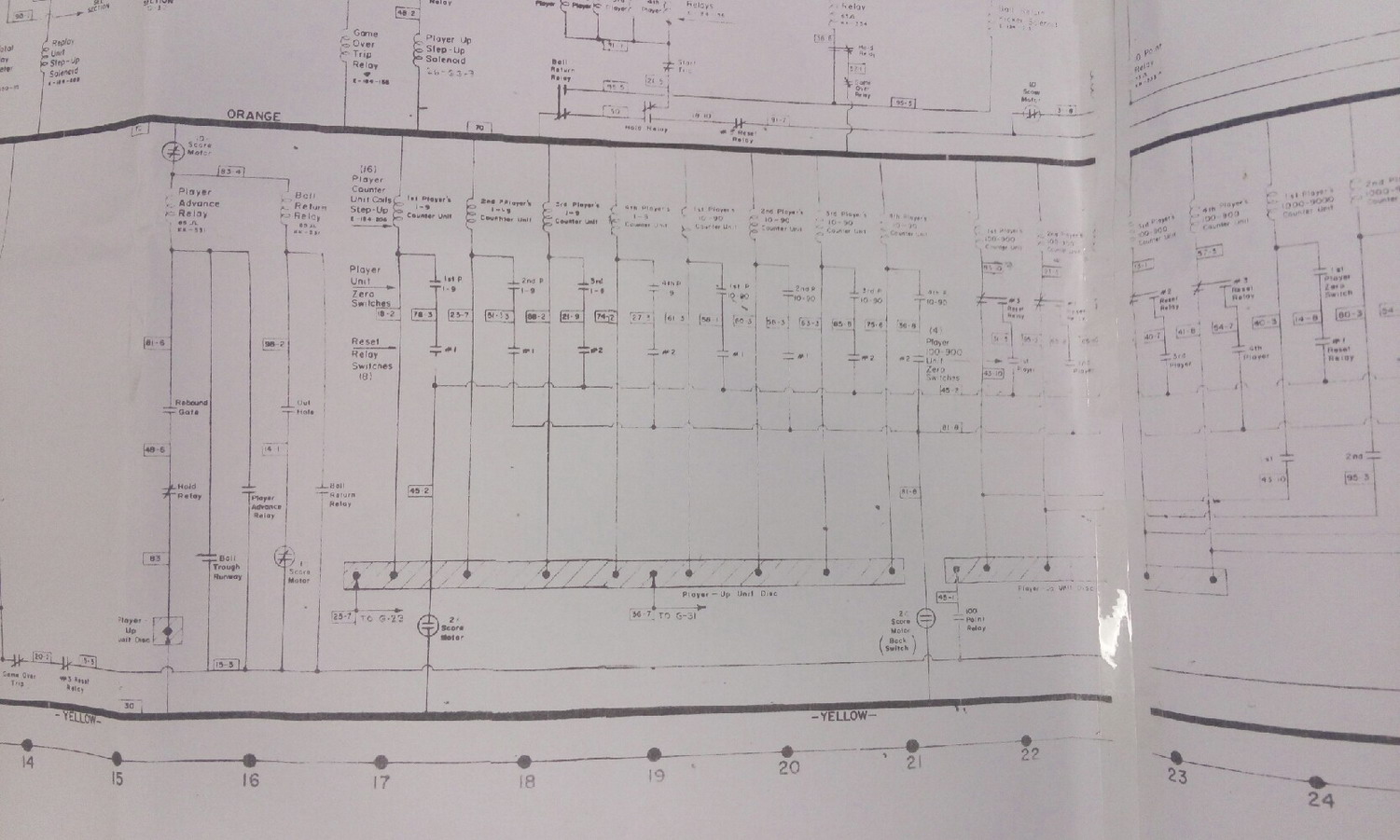 Volley Geschrieben 11. März 2016 Geschrieben 11. März 2016 Nein! Da muss irgendwo eine relativ große Einheit mit 2 Spulen sein die die Umschaltung von Spieler 1-4 macht. Normalerweise heisst die bei Bally "Player Up Unit". Die hat NIX mit der Endzahl zu tun! Das Ding hat zwei Spulen. Die eine zählt hoch(Spieler 1 - Spieler 2 - Spieler 3 - Spieler 4) und die andere macht beim Spielstart und beim Wewchsel auf den nächsten Ball einen Reset auf Spieler 1! Das musss sauber funktionieren! Den Plan kann ich leider nur schemenhaft erkennen. Hast Du den als PDF?