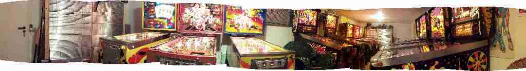 Mr.5101 Geschrieben 19. Januar 2004 Autor Geschrieben 19. Januar 2004 @Steelstopper, bestimmt klappt es irgendwann, für mich sind die meisten Treffen allerdings zu weit weg, um da mal eben für einen Tag hinzufahren. Oben habe ich vergessen hinzuschreiben, daß ich auch ein paar Flipper besitze, die sich mittlerweile auf zwei Kellerräume verteilen. (Irgendwann wollte ich mir mal EINEN Flipper anschaffen) Wen es interessiert : Startrek, HotHand, EightBall de Luxe, Black Knight, Flash Gordon, Pin*Bot, Cyclone, Black Knight 2000, The Machine. Wobei ich den Cyclone eigentlich schon seit November verkauft habe. Ich habe aller Flipper aufgestellt, und bis auf den Flash Gordon sind auch alle spielbereit. Beim FG muß ich noch etwas das Spielfeld retuschieren und überlackieren. Anbei noch ein Panoramabild meines einen Kellers. Die Spiegelfliesen an der Stirnseite sind die Überbleibsel seiner Vergangenheit als "Partykeller" . Viele Grüße Peter