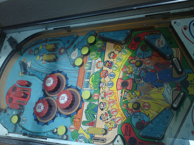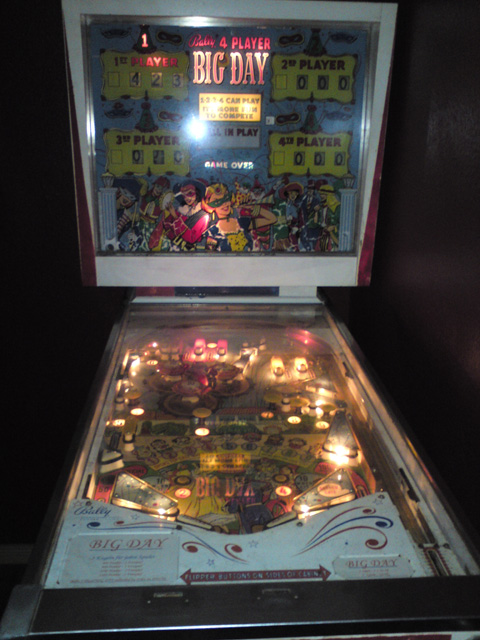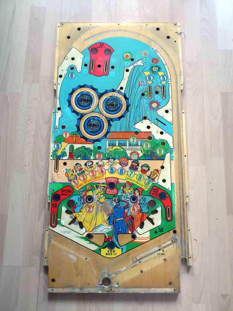 Sile Geschrieben 8. Oktober 2005 Geschrieben 8. Oktober 2005 Liebes Restaurations-Tagebuch, heute habe ich mir mal ein paar Gedanken gemacht, wie ich meinen Bally Big Day, der im Jahre 1964 das Licht der Welt erblickte, für die Zukunft erhalten kann. Dieses Gerät hat einen Teil Familiengeschichte mitgeschrieben. Damals im Besitz eines Freundes meines alten Herren hat das Gerät schon so manche kleine Party in der Jugend der Beiden versüßt. Der Freund verstarb vor einigen Jahren, womit das Gerät dann erstmal eine Weile in der Versenkung, genauer gesagt im Keller einer Gärtnerei als Spielzeug oder Regalersatz sein dunkles Dasein fristete. Jahre später, ich war 17 wenn mich nicht alles täuscht, frug man mich: "Willste nen Flipper haben? Wir haben da noch einen im Keller stehen" Bald stellte sich heraus, das es der Flipper des damalig besten Freundes meines Vaters war. Nunja, ich habe natürlich nicht gezögert, sagte "Ja" und holte das Gerät mit ein paar Leuten noch in der selben Woche ab. Erstmal in die Garage damit. Das das Gerät von sich aus nicht groß zufriedenstellend arbeiten würde, machte der Zustand (viertel vor Untergang würd ich mal behaupten) schon beim bloßen Hinsehen klar. Koniferen-Rollovers, Rost an jeder Schraube... Nach und nach machte ich mich daran, hier etwas zu reinigen, da etwas Farbe aufzubringen, und dort etwas zu entrosten. Immerhin gelang es mir - als bis dahin völlig spielautomatenunerfahren - die Münzprüfer wieder in Gang zu setzen, das Playfield einigermaßen bespielbar zu machen (Neuer Satz Schrauben, da der Rost schon die Augen beim Betrachten angriff) die Laternen einigermaßen wieder brauchbar zu verteilen, und sogar einen Satz neue Gummis (die alten waren MINDESTENS 20 Jahre drauf) draufzuziehen. Nun - mittlerweile seit 3 Jahren in Berlin lebend - möchte ich versuchen, das Ding so fit zu machen, das es noch einige Jahre erhalten bleibt. Diplomatische Probleme ergeben sich zunächst, das Gerät aus meiner Heimat - Dülmen in Westfalen - wegzubewegen, da mein alter Herr irgendwelche Besitzansprueche drauf hegt. Und hier muss ich meine Frau noch davon überzeugen, das ich von unseren 55 Quadratmetern 2 für das Gerät locker machen kann. Die völlige Ablehnung konnte ich ein wenig bremsen, indem ich sie mal bei nem Urlaub daheim mit dem Gerät bekannt gemacht habe. "Das Ding kommt trotzdem nicht ins Haus. Mach ma noch n paar Freispiele drauf" Nun wollte ich mal so nen Groben Schlachtplan mit Teilen die ersetzt, und Maßnahmen die getroffen werden müssen, vorstellen und mal schauen, was ihr als erfahrene Cracks so dazu sagt. Big Day - Restaurationsschlachtplan, Liste von benötigten Teilen: Backglass: Voll-Repro oder Ersatz. Hier ist recht herber Blätterschaden entstanden, bzw. bahnt sich dieser noch erst richtig an. Lässt sich aber noch ohne weiteres ergänzen. Eine Reparatur bzw. Klarlack-Konservierung wäre nicht hinreichend für eine fast ewige Zukunft Head: Kompletter Ausbau aller Mechaniken, Reinigung aller Buchsen und Kontakte, Massekabel im Lichtstromkreis. Patentzettelund Verkabelungshinweise vorsichtig demontieren, komplette Neulackierung des Kopfgehäuses im alten Stil, Erstellen der Maskierungen für die Deko, aufbringen und versiegeln. Massekabel des Lichtstromkreises im Kabelbaum ersetzen (Momentan nur provisorisch gelöst). Birnen und Fassungen regenerieren. Spielfeld: Reinigen, Ausbessern von Schäden, Versiegeln, Kontakte Reinigen, diverse Kontakte nachbiegen. Beleuchtung: Auswechseln von Lampen, Fassungen regenerieren, bzw. ersetzen. Weisse Gummis drauf! rechten Flipper ausrichten. Lagerbuchsen reinigen. Neues Rebound-Gummi auftreiben. Rinne im oberen Bereich spachteln (Die Kugel bleibt schon fast drin liegen!) Einbau von ein wenig auf das Gerätedesign abgestimmter Zusatzbeleuchtung (custom ) Fehlende oder defekte Teile auf dem Spielfeld: Plastic in der Mitte oben: Repro oder Ersatzteil besorgen. Slingshots unten haben ebenfalls macken. Ausbessern oder Ersatz schaffen. Body: Neulackierung der Beine/Kassentür. Gehäuselackierung im alten Stil. Maskenerstellung siehe oben. Ausbau der Innereien, Überprüfung und Reinigung von Relais und Kontakten (Bisher 3 gebrochene Relaiskämme durch Eigenanfertigungen ersetzt). Komplette Neulackierung des Bodys, und Versiegelung. Fehlende/zu ersetzende Teile: Die Ecken am Lockbar sind ziemlich abgenudelt. Da wären neue schön. Vielleicht auch ein neuer Trafo, der sieht irgendwie ziemlich rostig und marode aus. Achja, die überlöteten Sicherungen sollten auch mal ersetzt werden Und ne Isolierung für die Flipperbuttons (irgendwo kommt da manchmal was durch, aber das verleit dem Spiel eine gewisse ... Spannung )