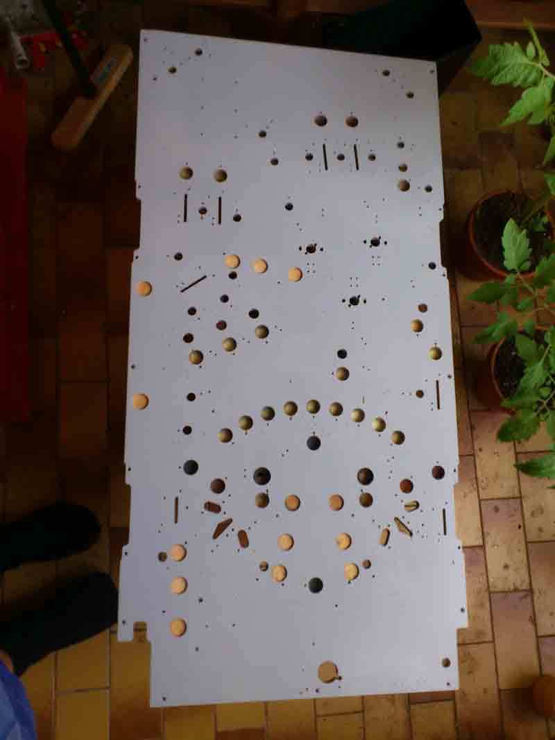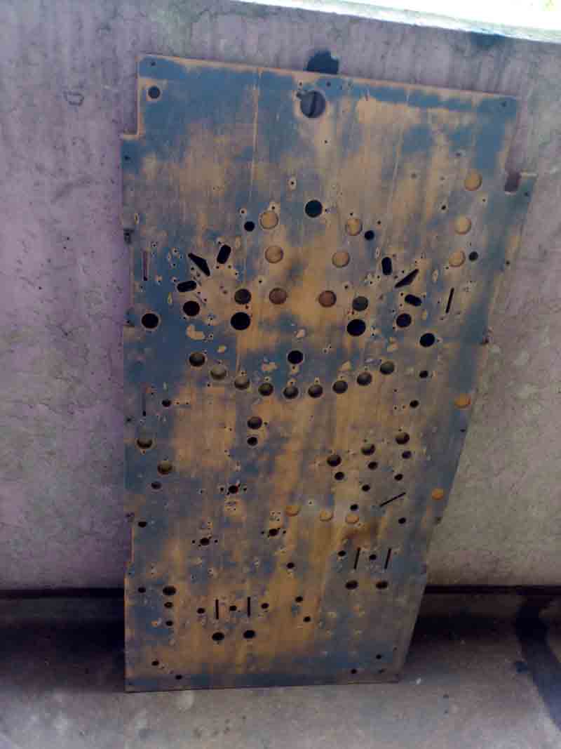 Sile Geschrieben 2. Juni 2012 Autor Geschrieben 2. Juni 2012 So. Wenige tausend Jahre später gehts auf einmal an die Buletten: Vollends gestripped. Einige ultrakrasse Sachen sind an der Mechanik übel aufgefallen. Die Körper der Schlagtürme sind streckenweise weggebröselt, am linken Flipper fehlte die Nocke für den EOS (Und die Spule ist noch nicht abgefackelt! Yeah! ) Die Flipperfinger sind dilletantisch geschweißt gewesen, was auch erklärt warum die so schräg hingen. Und eine Madenschraube ließ sich nichtmal mit Gewalt entfernen, was zum Durchflexen der Achse unterhalb des PFs führte. Nach 2 Tagen Schraubenfolter hats mir gereicht Als nächstes werde ich die Rückseite anschleifen, die später nochmal n grauen Anstrich erhält, und wenn die sauber ist, gehts auf der Bunten Seite des Lebens weiter. Da wo die Posts saßen, sieht man sehr derb den Unterschied zwischen Originalfarbe und etwa 50 Jahre in zwielichtigen Etablissements War alles ein mächtiges Geschraube. Die Switchstacks sind alle mit Tesa zuammengehalten und beschriftet und so, alles hängt noch am Kabelbaum und liegt auf einer provisorischen Wanne in Playfieldgröße. Die Mechaniken werden im Zuge der neuen Montage Stück für Stück überholt, um die Übersicht nicht zu verlieren.