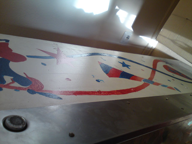 Sile Geschrieben 7. Juni 2012 Autor Geschrieben 7. Juni 2012 (bearbeitet) Ich hab dann mal angefangen zu Schrubben. Um den groben Mist runterzukriegen mit Melaninschaum (Schmutzradierer) und Alkohol. Kann es eigentlich sein, daß alte Playfields mit einer Art Schellack überzogen waren? Die klare Schicht scheint sich komplett aufzulösen unter Alkoholeinfluss... Nunja. Lassen wir zunächst ein paar Bilder sprechen: Schmutzradierer/Alkohol vs. 48 Jahre Siff. Ich hätts nicht gedacht, aber der Siff ist echt komplett entfernbar. Leider offenbaren sich dann auch bröselige Stellen, die vorher nicht so aufgefallen sind.... Und zur Verdeutlichung nochmal mit aufgedrehtem Kontrast Ein tierisches Geschrubbe, aber das Ergebnis macht Freude und Hoffnung auf mehr Erfolg Bearbeitet 7. Juni 2012 von Sile