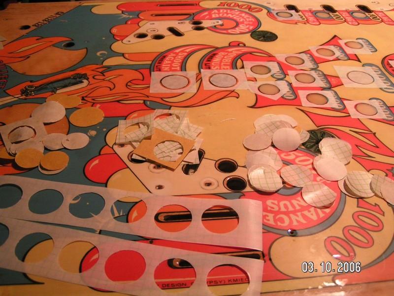 Stronzo Geschrieben 4. Oktober 2006 Autor Geschrieben 4. Oktober 2006 Im Hintergrund die windschiefen krummen Inserts. Vorne meine Testläufe der versch. dahinterstehenden Materialien: der Grossteil musste nach einer Spur Silikonentferner leider ausscheiden. Einzig die beiden Hobbyline-Produkte, das System3-Produkt von Daler-Rowney und zu meiner Überraschung dieser komische Stift "Pic Tixx" haben diese Vorwäsche überstanden. Wobei etwas physikalische Wischung auch denen den garaus gemacht haben, aber erst nach 3 mal drüberstreichen. Der Pic-Tixxx-Stift hat leider eine zu grosse Öffnung, man kann eine saubere Linie ziehen, die ist dann aber 2 mm hoch. Schade. Bleiben noch HobbyLine Acryl Glanz Lack und Acryl Farbe sowie Daler-Rowney System3, das ich bisher immer verwendete. Dort nimmt es mir aber beim Abziehen der insert-Schablonen die Farbe mit. Also auch draussen. Die nächste Runde Test fand an den verbleibenen Stellen Farbe statt: - Der Edding 1800 war nach der Silikonentferner-Runde ziemlich blass geworden, überstand aber Isopropanol und auch Lack+Härter+Verdünner. Ersaunlich. Muss ich mal andersrum probieren. - Der UniPaint-Marker, bis dahin deutlicher Spitzenreiter, mag keinen Verdünner: ausgeschieden. Ohne wäre es auch ein Versuch wert. - Der Pic-Tixxx-Stift scheint recht immun zu sein gegen solche Angriffe: die plattgedrückten Stellen hielten gut stand. - Die HobbyLine-Produkte gaben nach 3 mal mit dem Pinsel drüberstreichen ihre Farbe ab, ebenso Daler-Dingsda. Letztendlich gibt es also _überhaupt_ gar_ _nix:_, das jeden Gang übersteht. Oder ich brauche was anderes zum Lackieren, dafür ists aber nun zu spät. Habe mich dann für die Acryl-Farbe (nicht den Lack) von HobbyLine entschieden. Vorher den ganzen alten Schmodder wieder runtergekratzt, mit dem neu erstandenen Schneidezirkel saubere Innen- und Aussenränder/-kreise hergestellt, dann eingepinselt und relativ früh wieder entfernt. Die HobbyLine-Farbe ist eindeutig angenehmer zu verarbeiten als Daler-Dingsda, lässt sich gleichmässiger auftragen und trocknet genauso schnell. Dann sah es so aus: