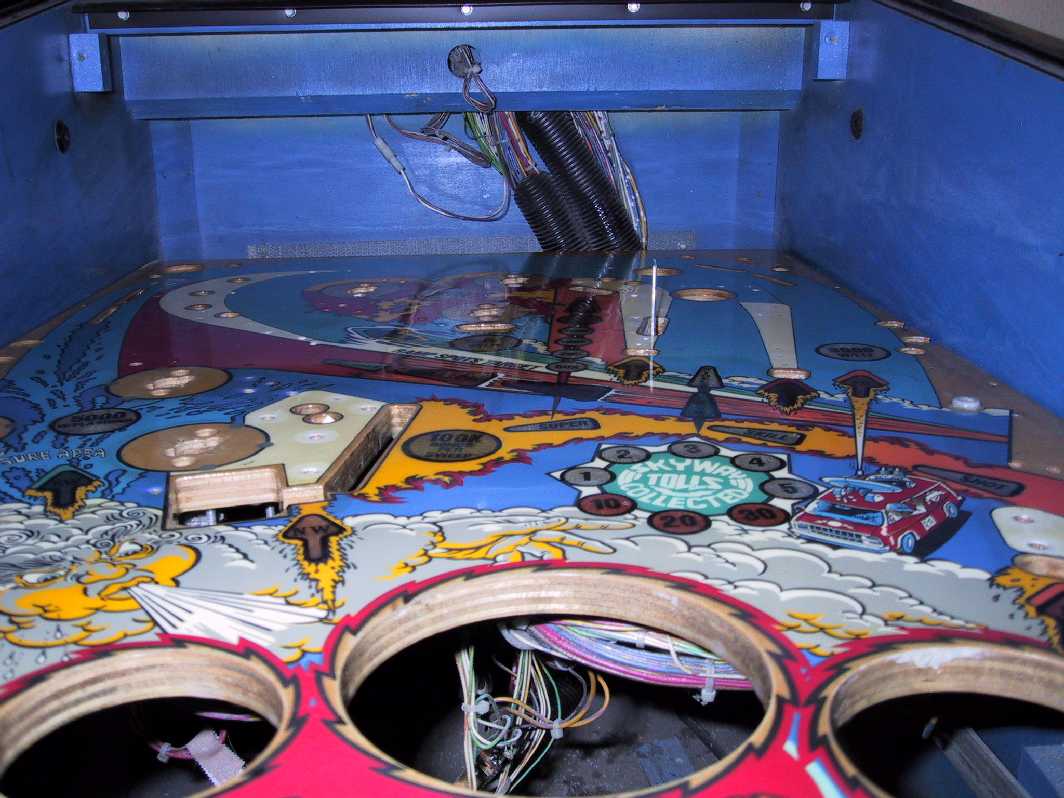 Stern Geschrieben 16. Februar 2007 Autor Geschrieben 16. Februar 2007 So und hier mal das Spielfeld mit Decals. Im Linken unteren Bereich kann man Versuche mit verschiedenen Decalaarten und Farbstiften sehen Verschwinden ja unter dem Apron. Aufwendig wurde jetzte noch das lackieren da die Aufkleber recht dick waren musste einiges an Lack drauf und da es immer etwas trocken muss hat das gedauert. Auch musste ein paarmal kräftig geschliffen werden und nochmal touch ups dank Unebenheiten usw. Verwendet habe ich von Clou den Hartsiegel, eklig zu verarbeiten (jedesmal die Walze wegschmeißen), aber die Oberfläche wird super ! Hier mal ein Bild vom jetzigen Stadium, muss jetzt mal aufhören und nach Hause fahren