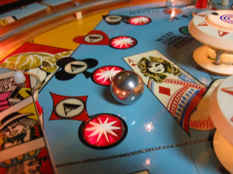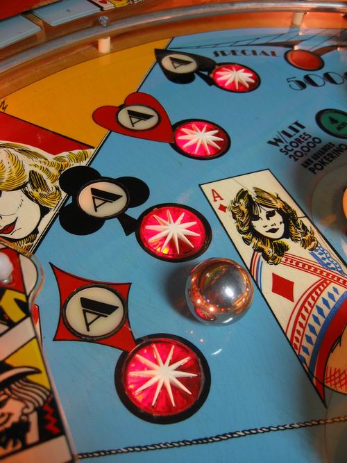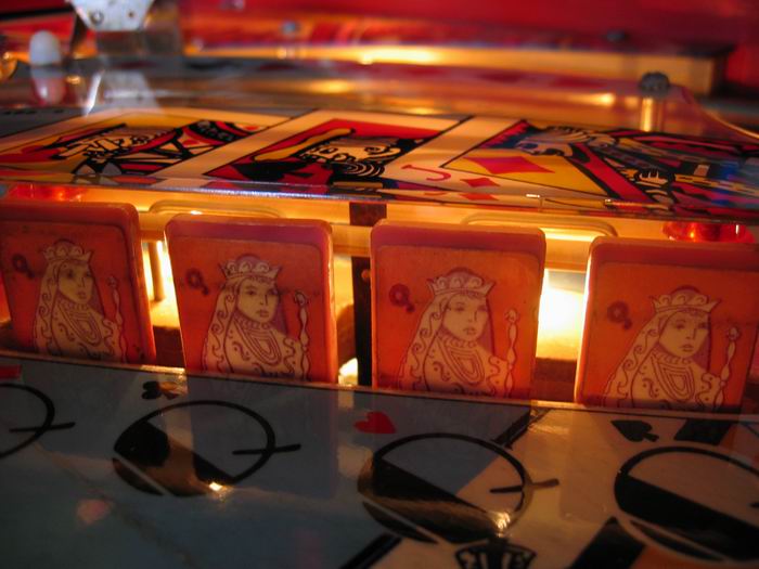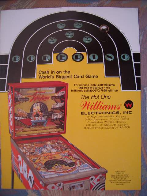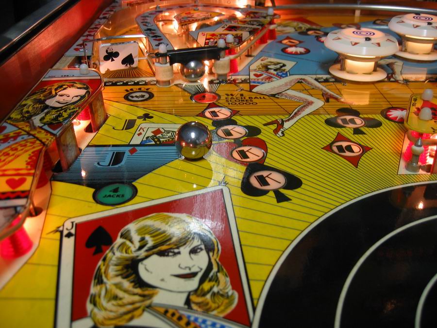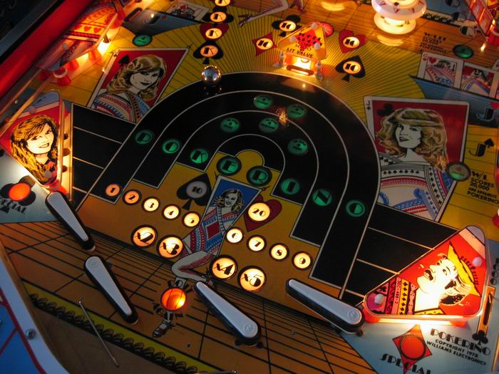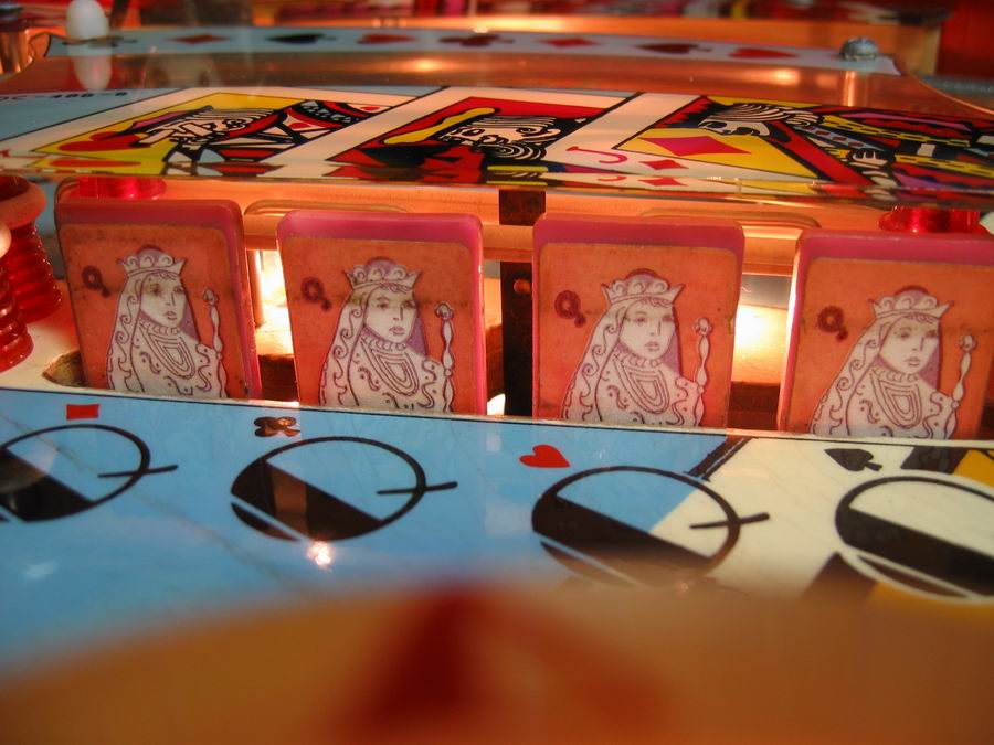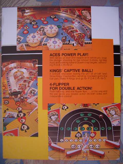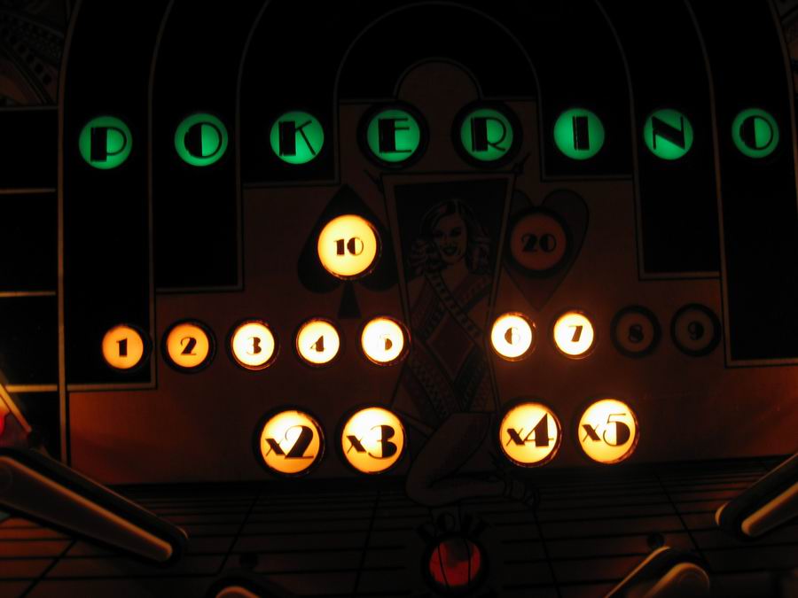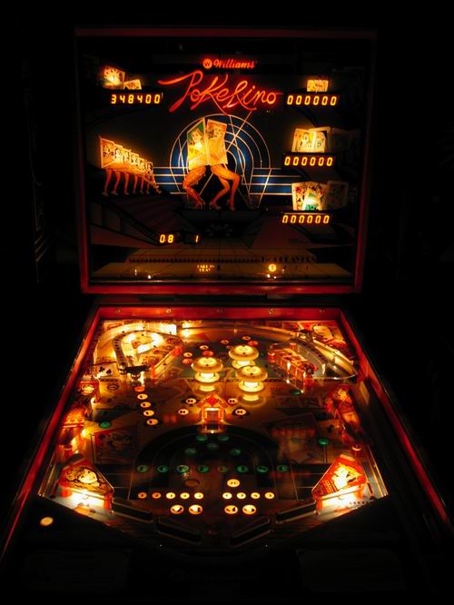 Medusa Geschrieben 13. April 2007 Geschrieben 13. April 2007 (bearbeitet) POKERINO (Williams 1978) Original Reportage stammt vom französischem pinhead Christian Pougeaud vom Forum flippers-jukeboxes.net mit dessen Erlaubnis ich die pics übernehme. Selber ist mir der Pin seit damaligen Zeiten nie mehr über den Weg gelaufen. Der Pokerino ist ein widebody der kurz vor dem Phoenix rauskam. Kartenthema-Flipper, auch bei Williams beliebt und oft benutzt (zB Gig Deal, Pat Hand, Dealers Choice zB zu e-m Zeiten). Wie beim Phoenix ist auch hier der sound noch relativ beschränkt. Bearbeitet 13. April 2007 von Medusa