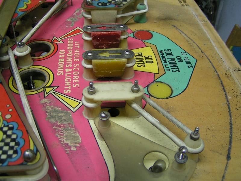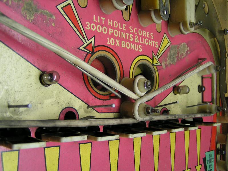 Stronzo Geschrieben 30. November 2007 Autor Geschrieben 30. November 2007 So, wie versprochen meine Lösung des Gummi-Problems. Nicht original, aber besser, konnte die Kugel bisher weder unter das Plastic noch oben dagegen spielen. Die lange Seite habe ich in 2 gleiche Teile geteilt, in der Mitte mit einem Starpost und 5/16-Gummi, links und rechts jeweils 2"-Gummis (oder 2 1/2"? Weiß nicht mehr genau). Andy Wenn mir jetzt noch jemand auf die Frage nach der korrekten Verkabelung antworten würde ........