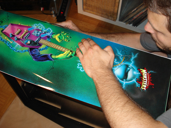 Kevin Geschrieben 28. Juli 2008 Autor Geschrieben 28. Juli 2008 (bearbeitet) So,... am Wochenende habe ich einen kurzen Zwischensprint einlegen können, der mich und meinen MB dem Ziel ein gutes Stück näher gebracht hat. Wie auch bei der Backbox habe ich den Untergrund komplett Schwarz matt lackiert. In Anbetracht der Tatsache, dass ich den matten Lack im Nachhinein noch etwas geschliffen habe, werde ch wohl das nähste Mal direkt Schwarz hochglanz lackieren. Nachdem die Decals drauf waren, ging es an die nach dem Abschneiden der Aufkleber weißen Ränder. Zum Abkleben habe ich sogenanntes Kantenband von Tesa genommen. Von der Haftwirkung m.E. optimal und haargenau zu platzieren So sah die Kiste dann mit abgeklebten Kanten aus: Bearbeitet 28. Juli 2008 von Kevin