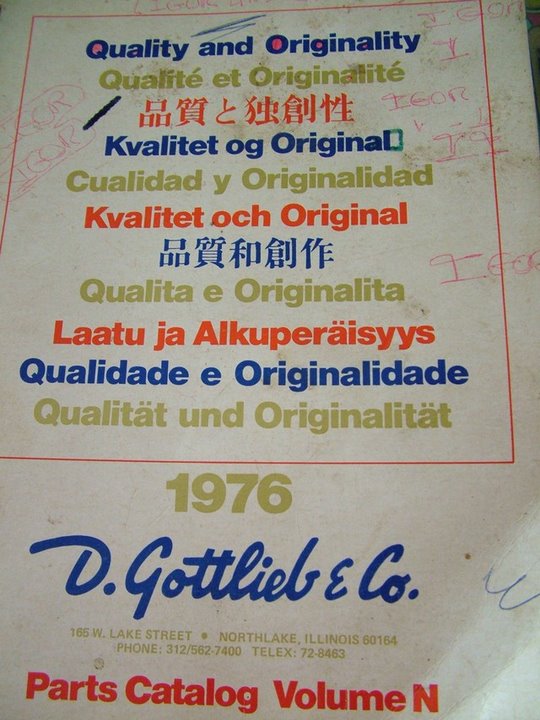 Medusa Geschrieben 8. Juli 2008 Geschrieben 8. Juli 2008 Hi liebe Gottlieb e-m freaks folgend ein paar Auszüge des originalen Gottlieb Teilekatalog von 1976. Die pics stammen allesamt von französischem pinhead Francis, DER Grossmeister für Gottlieb e-m Pins der 70er Jahre unter diesem thread befindet sich der 1970 Katalog multikulti cover