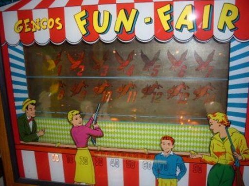 Medusa Geschrieben 29. Mai 2009 Geschrieben 29. Mai 2009 (bearbeitet) FUN FAIR von GENCO. Originalreportage stammt von Cédric Bérenger aus dem französischem e-m Flipperforum retroflip! Wie üblich, in den Fällen, von mir... Der Fun Fair ist aus dem Jahre 1957 (oder 1958 laut IPDB), wie auch immer - die meistens unter uns waren noch nicht geboren ! (und ein schon damals geborener Essener Einwohner sollte wegen kommender brutalen Szenen NICHT weiterschauen )Genco gehörte zu den ersten 'pinball' Fabrikanten - selber besitze ich den Silver Cup aus dem Jahre 1932-33. Aber nach ein paar nicht sehr erfolgreichen Produktionen hatte sich Genco eher auf Baseballspielen verlegt. Dies war ein letzter Versuch, doch noch in der Flipperszene Fuss zu fassen, mit 2 Modellen: Dem Show Boat und dem hier folgenden Fun Fair. Dies ist ein aussergewöhnlich schönes Spiel, welches ohne Komplexe mit den damaligen Gottliebproduktionen mithalten kann in der Riege der 'Millionenflipper'. Die Szenerie spielt sich auf einer Kirmes ab, genauer gesagt am Schiessstand. Bemerkenswert, dass das Spiel ein doppeltes backglass hat. Auf dem hinterem backglass tauchen sofort beim Einschalten 2 verschiedene Tiere auf, Enten und Hasen. Spielfeld Bearbeitet 29. Mai 2009 von Medusa