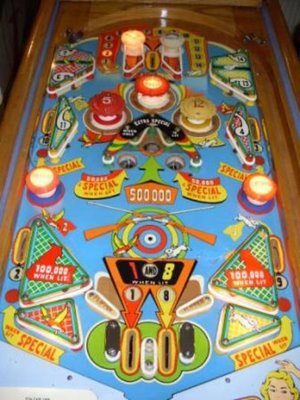 Medusa Geschrieben 29. Mai 2009 Autor Geschrieben 29. Mai 2009 Oft findet man bei Genco farbige flifis. Hier sind diese gelb, was dem Spiel irgendwie zusätzlichen Charme verleiht. Hier die Innereienansicht! Die Elektromeschanik singt wie die von Gottlieb! Man bemerke, dass (wie übrigens viele anderre Genco Spiele) mit einem Gleichrichter ausgestattet waren! Endzahlloterie wird mit einem Sternchen gekennzeichnet, damals übliche Praxis.