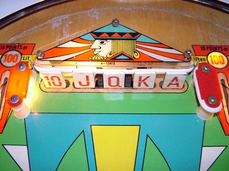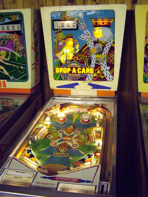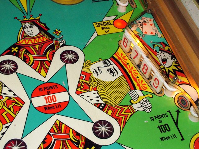 Medusa Geschrieben 3. Juli 2009 Geschrieben 3. Juli 2009 (bearbeitet) DROP A CARD (GOTTLIEB 11/1971) Produktion: 2600 Stück Originalreportage von Francis aus dem französischem e-m Forum retroflip.fr, von mir wie üblich angepasst. Das backglass Einspieler Gottlieb mit ewigem Spielkartenthema, hier sind die Spielkarten auf 'old fashion' abgebildet. Während der König mit Schummelei beschäftigt ist, wird die Königin hinten von einem Nebenbuhler scheinbar angebaggert.. . Viel freier Platz auf dem absolut symetrischem Spielfeld und dem Aberglauben wird mit 13 drop targets ein Schnippchen geschlagen Bearbeitet 3. Juli 2009 von Medusa