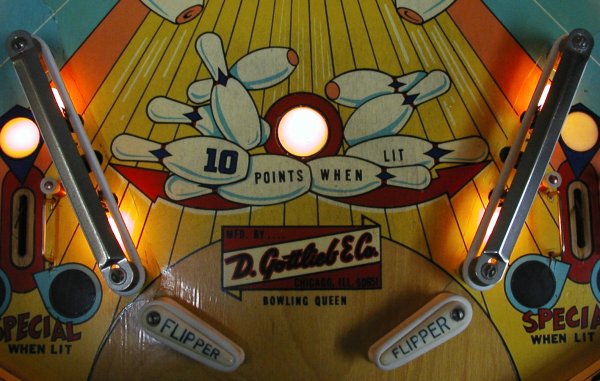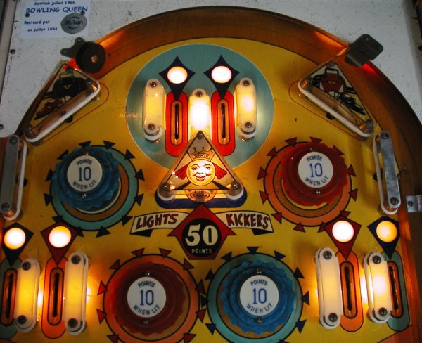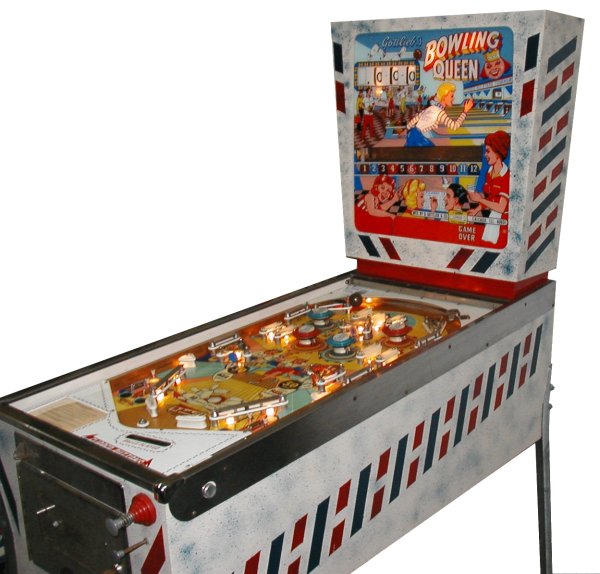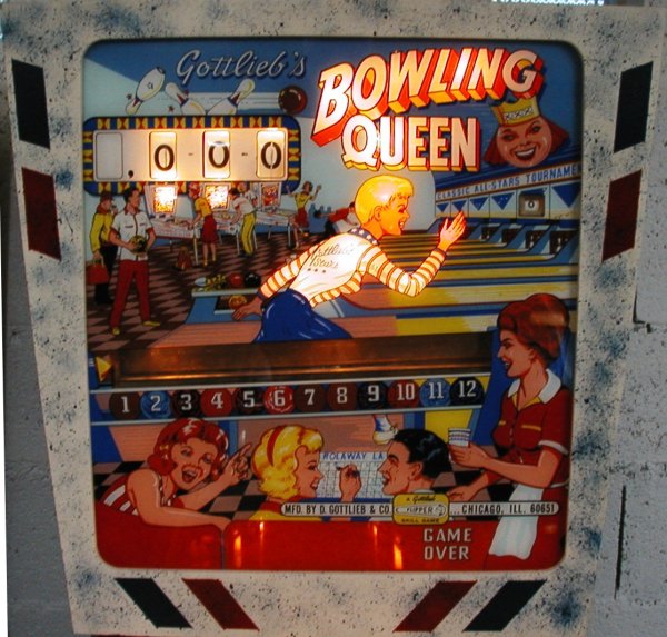 Medusa Geschrieben 6. August 2009 Geschrieben 6. August 2009 Bowling Queen (1964) Original Reportage von meinem Namensvetter Milan aus den flipjukes Forum, von mir angepasst...... Spieldesign von Wayne Neyens! Von dem Spiel wurden 2650 Exemplare produziert, was eine hohe Produktionszahl in den 60er Jahren war - eigentlich nicht allzuhoch, aber da damals alle paar Wochen ein neuer Pin auf den Markt kam, also doch schon recht hoch. Dies ist ein typisches Anfang 60er mit mehreren Spielkombinationen um ein Freispiel zu ergattern. Restauriert wurde dieses hier gezeigte Spiel anno 1994. Der Name des Flippers deutet darauf hin, dass der Designer kein Frauenhasser war. Schön und eher selten, auf der Flipperscheibe sind wiederum Flipper abgemalt.