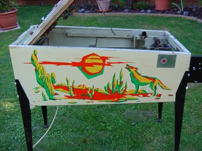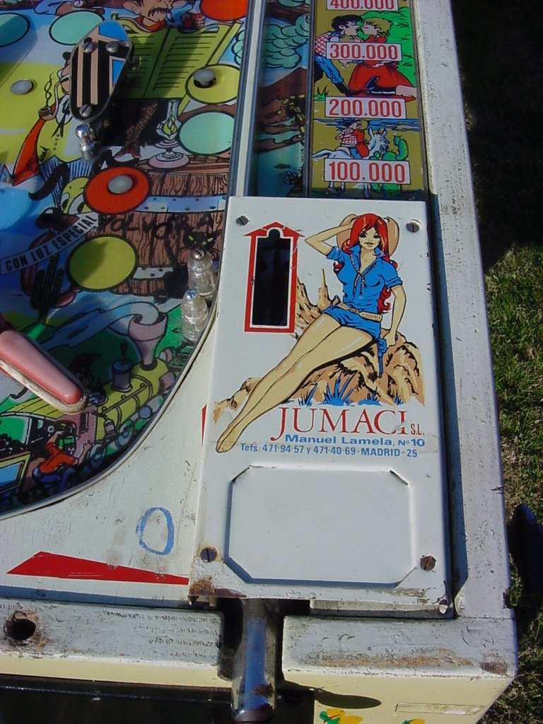 Medusa Geschrieben 7. August 2009 Geschrieben 7. August 2009 (bearbeitet) Hi liebe Freunde der Silberkugel, hier mal was mehr als exotisches, ein spanischer Flipper der Marke JUMACI gefunden von einem Freund von mir aus Frankreich, und gesucht werden halt eventuelle verfügbare Infos Name unbekannt kein Kopfteil, dafür aber 'Millionenflipper' Prinzip Thema - Western Format ist kleiner als normales Flipperformat Glasscheibe wird wie bei den alten Rally's oder auch bei manchen e-m Bally spielen nach oben geöffnet Bearbeitet 7. August 2009 von Medusa