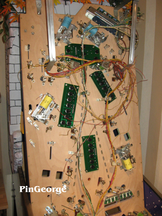 PinGeorge Geschrieben 1. März 2011 Autor Geschrieben 1. März 2011 Sämtliche Platinen sind nun unter dem Spielfeld montiert; hierbei passt das untere LED Board genau unter das Insert Board. Alle Beleuchtungen sind somit gesetzt und nun muß alles verdrahtet werden und in die Matrix B und C Dokumentation aufgenommen werden - Arbeit für zwei Tage. Weitere Teile wurden eingebaut - sowie die kleinen Lötfahnen an den Jet Bumper Beleuchtungsfahnen. In Kürze werde ich mit den Arbeiten für sämtliche Metallteile beginnen wie Subway;Scoops und Lanes.