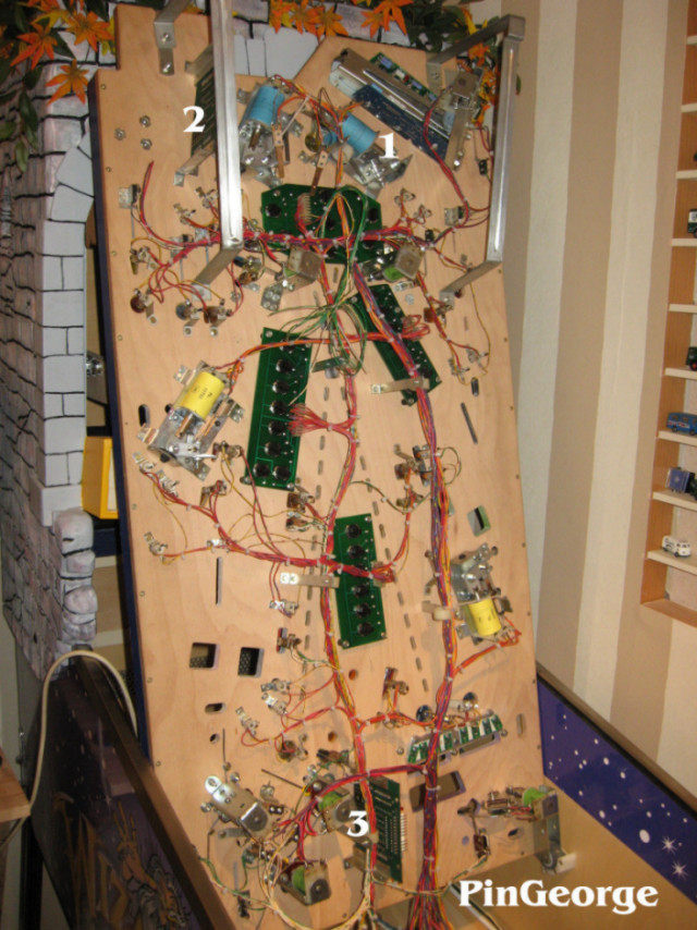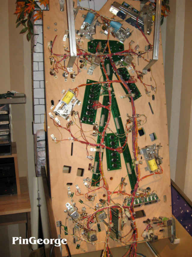 PinGeorge Geschrieben 14. Februar 2011 Autor Geschrieben 14. Februar 2011 Die ersten 8 Solenoids sind eingebaut und die Kabel wurden auf dem rechten Hauptstrang verlegt. Morgen folgt dann der hauptkabelstrang für weitere 8 Solenoids und dann kommt der Hauptstrang für die Flasher; es werden nicht vier sondern 6 Rotating Light Dome Flasher verbaut. Auf dem Bild sind nun die Karten für die Opto´s montiert; genügend Vorrat für die Opto Lichtschranken. 1. integrierte Opto Karten an der Balltruhe 2. 7-er Opto Karte für die Rampen und Scoops 3. 10-er Opto Karte für die Wall