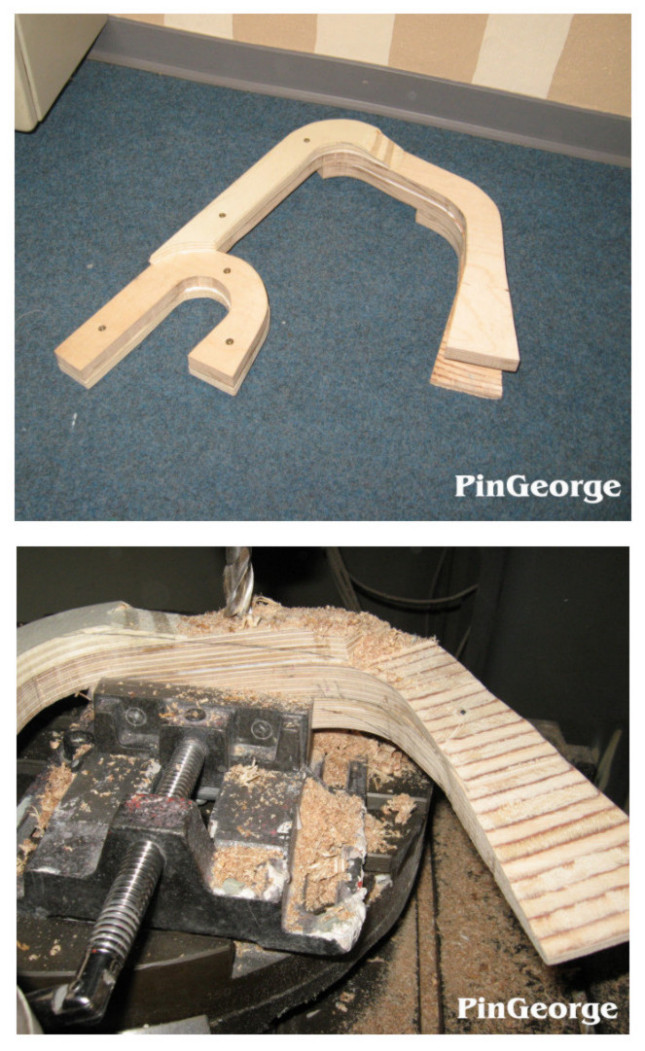 PinGeorge Geschrieben 4. Mai 2011 Autor Geschrieben 4. Mai 2011 (bearbeitet) Die Teilstücke werden dann passergenau übereinander gelegt und dann mit Druck verleimt; zusätzlich mit Schrauben gesichert. Nachdem der Holzleim abgebunden hat gehe ich hin und fräse alles überschüssige Material weg; so geht die weitere Bearbeitung dann schneller von der Hand. Bearbeitet 4. Mai 2011 von PinGeorge