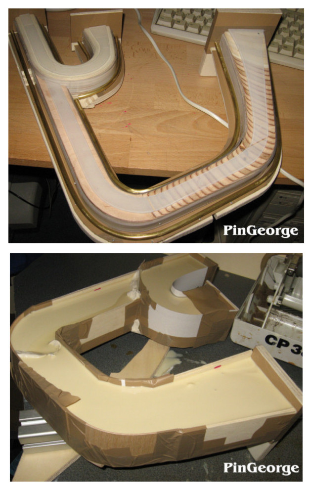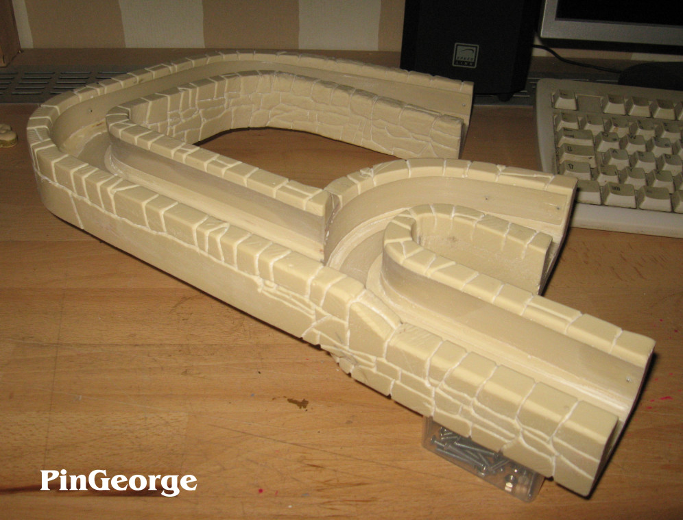 PinGeorge Geschrieben 10. Mai 2011 Autor Geschrieben 10. Mai 2011 Die Rampe ist mittlerweile komplett vom Holz befreit und muß nun noch ein wenig geschliffen werden, innen im Bereich des Kugellaufes. Zuerst werde ich jedoch die Steine gravieren und dann die Löcher bohren für die rundumlaufenden LED Beleuchtungen.
