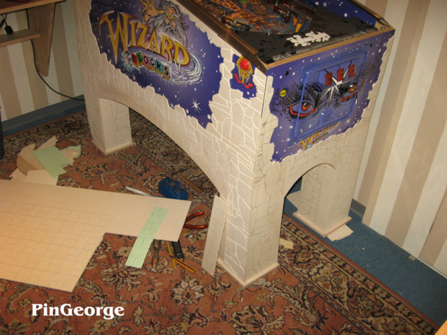 PinGeorge Geschrieben 7. Februar 2012 Autor Geschrieben 7. Februar 2012 Das Ganze muß dann auf der rechten Seite auch erfolgen - auch wenn der Flipper an der Wand steht und man es später nicht mehr sehen kann. An der unteren Kante der Backbox wurden auch schon die Übergänge für die Steine hergestellt so das fast alles fertig ist für den Anstrich.