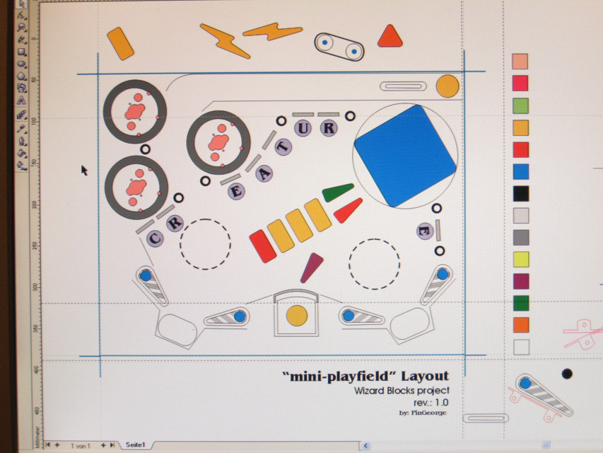 PinGeorge Geschrieben 9. Februar 2012 Autor Geschrieben 9. Februar 2012 Danke..... Vor einigen Tagen wurde der erste Entwurf für das Mini-Playfield angelegt. Hier wird es nun zwei kleine Flipperfinger Paare geben, drei Jet Spins und einige Drop Targets für die Komplettierung des Creature Trap. Werden alle Targets beleuchtet, wird die Trap geöffnet, die sich vorne zwischen den Flipperfinger mittig befindet. Zusätzlich werden unter dem playfield noch zwei Magnete montiert; und in der Ecke befindet sich dann das Toy - Highlight: Ein drehender "Jack-In-The-Box" Würfel. Ähnlich aufgebaut wie vom bekannten Magic Trunk des TOM, jedoch noch mit einem zusätzlichen Feature Highlight. Die komplette und schwierige Konstruktion ist bereits in meinem Kopf, so das sich hier keine weiteren Probleme ergeben dürften. Mit den Arbeiten zu diesem kleinen Spielfeld wird schon bald begonnen, es folgen in Kürze die Grafiken und die Herstellung hier an dieser Stelle.