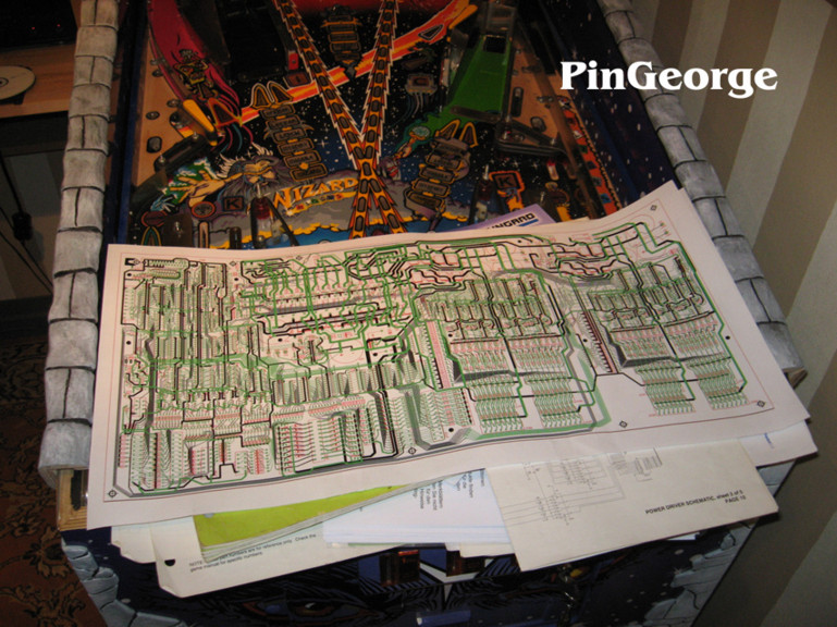 PinGeorge Geschrieben 29. März 2012 Autor Geschrieben 29. März 2012 Viel um die Ohren und keine richtige Zeit für meine Flipperprojekte...... aber es gibt wieder neues zu berichten. Zuerst jedoch zu Euren Fragen bzw. Anregungen. Also bis dato war das Layout noch nicht komplett, was nun der Fall ist. Bei dem Powerdriver Board handelt es sich um ein Multilayer Design, d.h. das die Platine beidseitig Leiterbahnen führt. Bei der Menge an Leiterbahnen könnte man das Ganze sonst nie unterbringen oder müsste dann ein riesiges Board bauen. Bei der schwarzen Grafik handelt es sich um die untere (hintere) Board Ebene. Das grüne Layout ist dann für die Vorderseite gedacht. So können dann die Leiterbahnen kreuzen, was einer wahren Achterbahnfahrt gleicht..... und mir manchmal den Kopf rauchen lässt! Was die Pinheads gerade aus dem US Raum betrifft, so bin ich dort gut bekannt, da ich in einem anderen Forum tätig bin ( Kanada ) Diese Plattform bringt dann schnell alle Infos, unter anderem zu rgp ( google ) und anderen Foren rüber. Nun ist das Layout komplett fertig geworden und zu 99,9% fehlerfrei. Eine letzte Endkontrolle kommt erst dann, wenn die Erweiterung fertig gezeichnet ist. Das Board erhält nun die Erweiterung und wird hierbei um knapp 25% größer. Dabei werden viele neue IC´s, Kondensatoren, Widerstände und Anschlüsse eingebaut für die Lamp Matrix C % D. Dies werden dann J 121 - J 124. Hierbei können dann statt der 128 Lampen nun 256 angesteuert und lokalisiert werden. Das originale Board hatte übrigens schon Anschlüsse frei an U25......