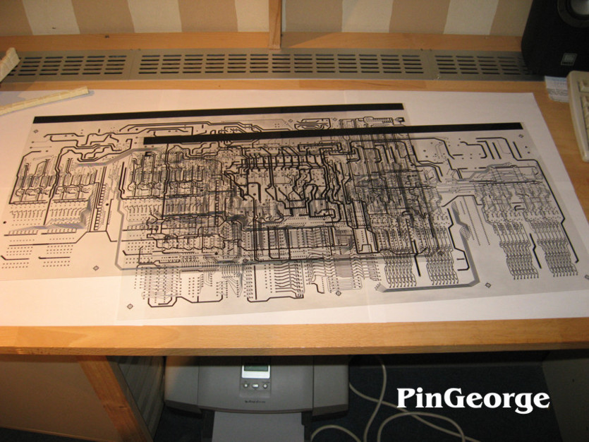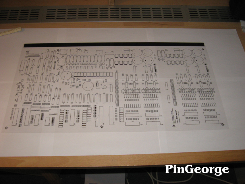 PinGeorge Geschrieben 4. Mai 2012 Autor Geschrieben 4. Mai 2012 ALLE Teile sind da - und wieder musste einiges am Layout geändert werden - da schon wiede einige Bauteile durch andere ersetzt werden mussten. Nun ist das Layout fertig und ich habe mir einen Papier Vorabdruck erstellt. Schön zu sehen die gewaltige Größe, es wird gerade einmal genau unten in den Cabinetboden passen. Als nächstes werden nun alle Leiterbahnen noch ein letztes Mal geprüft, und dann werden die Layout Dateien in die Druckvorstufe gehen. Hier werde ich dann 5 Filme erstellen in höchster Auflösung von 3540dpi. Also wenn alles gut läuft geht es in einer Woche dann endlich in die Produktion......