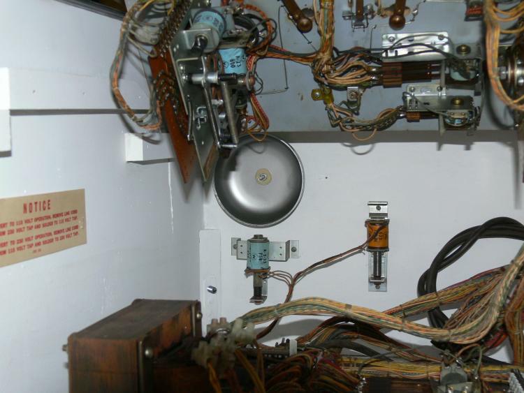 Stronzo Geschrieben 31. Juli 2010 Autor Geschrieben 31. Juli 2010 (bearbeitet) Sodele, das mit dem Knocker wird klarer. Habe in meinem Fundus ein entsprechendes Teil gefunden. Hat allerdings nur einen 2er-Stecker dran. Die hintere 4er-Steckleiste auf dem Bodenbrett ist definitiv für den Knocker da, wenn ich den aber mit dem 2er-Stecker einstecke, knockt er nicht. Fehlt wohl noch irgendwas ....... . Offenbar dienen die 2 anderen Steckplätze zur Ansteuerung? Im Plan kann ich nix finden. Das Glockenteil scheint öfters zerlegt worden zu sein oder fehlte ganz. Habe einen anderen Beitrag gefunden, Foto unten, besser als meines, das Ding ist genauso unkomplett. Hat jemand so ein Teil in komplett und evtl. abzugeben? Bearbeitet 31. Juli 2010 von Stronzo